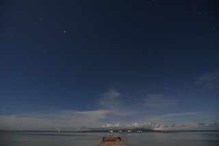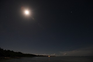 明るいように写っているが、 実際は月明かりだけ。 お月様は明るいんだね。 正面の島は西表島。 流れ星でも写ればなと 相当な枚数を撮ったが成果なし。 ISO1000 f4 10秒 |
