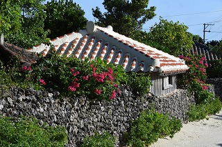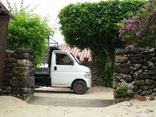 | 珊瑚石で高い塀を作り、 台風に備えている。 |