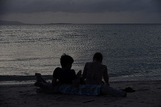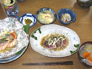 | 18時になったら、「小浜荘」で晩メシ。 | 晩メシが済んだらお約束の西桟橋に来たけど、 今日は夕日は全くダメ。 雲も多いので星空観測しないで 「小浜荘」に戻った。 |