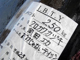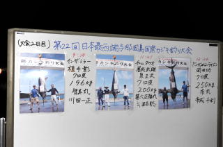 コイツは250kgもあった。 | 最終日には釣果が貼り出される。 | |||