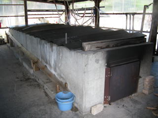 直売所の奥にある製塩釜。 | 黒糖。 JA純正の物。 |