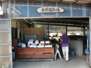 | 比川にある与那国海塩の直売所。 2015(平成27)年の台風で損害を受け、 廃業する予定だったらしいが、 継続を望む声が多く寄せられたため、 何とか復活したらしい。 よかったね。 |