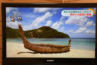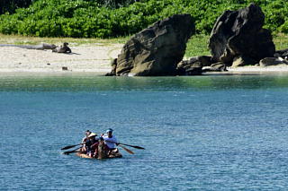 | 日本に人類が来た1つのルートに 考えられている「台湾〜与那国」を 3万年前の草舟を再現して渡って みようというプロジェクトがある。 2016/07は、まず与那国〜西表を 約30時間かけて「予行演習」し、 2017年に台湾から渡ってみる予定 だそうな。 |