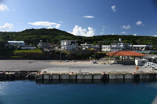 | 久部良港に停泊中の「フェリーよなくに」。 2014年度中に新造船にバトンタッチする。 コイツはインドネシアに行くそうな。 |