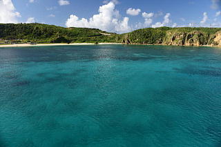 Dr.コトーの診療所のセット。 | 島の南の比川浜。 すばらしい海の色。 女の子が1人で泳ぎにきていた。 |