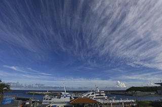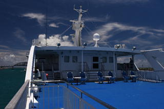 まだ台風の影響がほとんどない 穏やかな海を、ほとんど揺れずに 滑るように石垣島へ向かう。 |