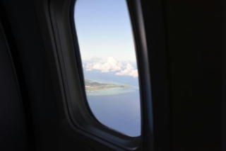 | RAC741便が旋回して与那国島が見えてきたときに、その向こうに台湾も見えた! 東から西方向を撮影。 石垣発与那国行きRAC741便から。 |