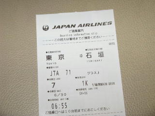 ラッキーなことにクラスJの 最前列の窓側が空いていたので、 1,000円ナリを支払い、UPグレードした。 「1階席」なんて書いてあるのは、 ジャンボ機が就航していた頃の名残りか。 石垣便に使われているボーイング737は ワンフロアのみ。 |
