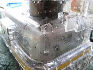 | ヤフオク!に出品する前に 与那国島で水中写真を撮るために 古いデジカメとハウジングを 何組か持ってきた。 その中で1本目に持って行った Canon IXY DIGITAL500とWP-DC800 (1行上のカクレクマノミの写真は このセットで撮影したもの。)が、 少し水没してしまった。 ダイビング後、 浸水部を特定させるべくボタンの軸の 水の付き具合などを細かく見てみたが 特定できなかったので、 ひとまず、もう1つ持ってきてあった WP-DC800に交換して、 次の日のダイビングに持って行ったら、 問題なく使えた。 カメラには特に影響がなかったのが 助かった。 |