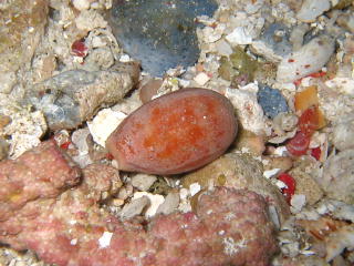 | 何となくなまめかしい色の ゾウゲイロウミウシ。 右がアタマだよ。 |