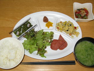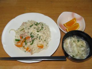 昼メシは俺が大好きなナポリタン! タバスコとチーズをたっぷしかけて食す。 お椀に入ったコーンポタージュスープも なかなか。 あ、俺は左利きなので、 フォークは左手で持つから こういう向きです(箸は右だけど。)。 |