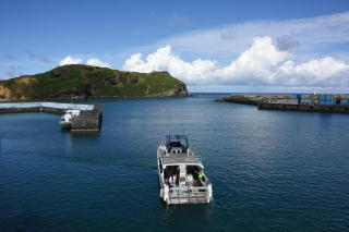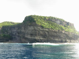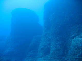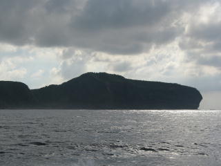 | 空は、今イチスッキリしないけど、 北風(翌日の気象庁の記録では西風。) になったお陰で、島の南側の 「海底遺跡」に行くことができた。 |
