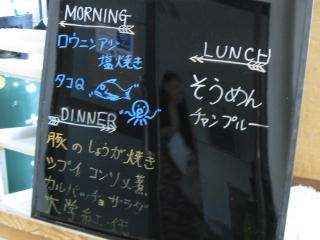 | さあ、与那国島でのダイビング最終日。 お献立のロウニンアジやタコの絵が うまいね。 |