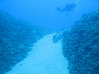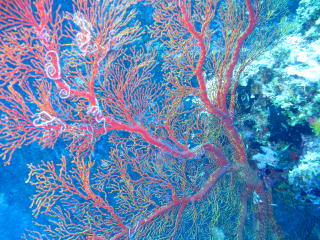 | 年代物のウミウチワ。 俺が与那国島で潜り始めた頃から あったような気がする。 海流などでよく折れないもんだ。 |