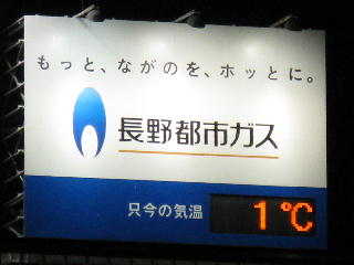 長野駅前の温度計は、1℃。 もちろんプラスの気温だ。 2月の中旬になろうとするのに、 この「暖かさ」は異常だね。 |
