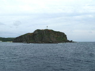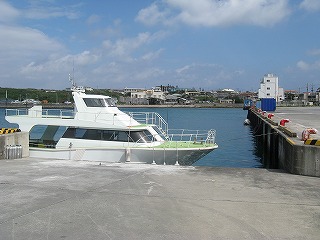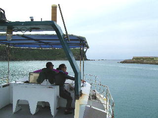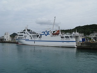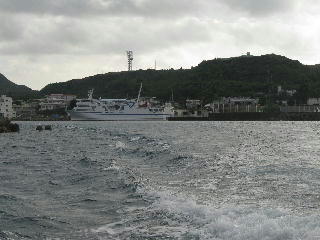 西表島を過ぎた辺りで、 「フェリーよなくに」を追い越した。 このフェリーは、これから久部良(くぶら)港 に入港するんだね。 |
