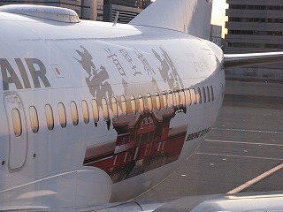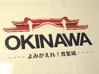 | 首里城ジェットのラッピング。 「希望」の文字を見ると、涙が出てくる。 |