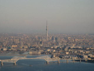離陸直後に東京スカイツリーが見えた。 この写真はブレてます(苦笑)。 |