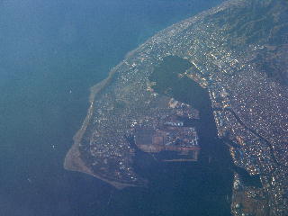 高校時代を過ごした 清水の三保半島。 原版を等倍で見ると、 当時住んでいた団地もハッキリ写っていた。 北から南方向を撮影。 |