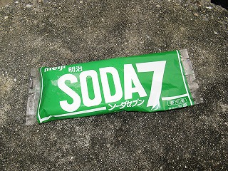 | 3本目も残念ながら何事もなく…。 | 真冬の与那国島でのダイビングは あっという間に終わり、 器材などを片してアイスを買いに行った。 俺定番のきなこもちアイスはなかったようだ (奥までは探らなかった。)が、 その代わり「SODA7」60円ナリ があったので、迷わずGET! |