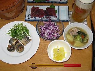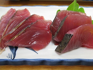 カツヲの刺身も付いたよ。 ただ、食感は夏の方がいいね。 もちろんこれだって、内地のグズグズ したのより、相当に旨いよ。 単に水揚げしてから喰うまでの 時間の関係かな。 |
