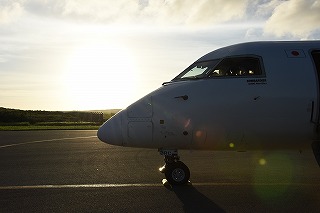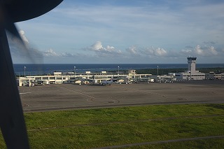 | すっかり夕方の与那国空港に 無事に到着した。 |