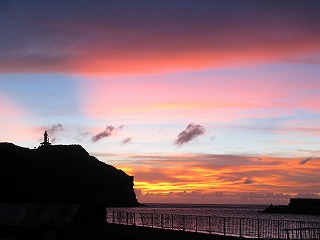 ちょうど夕焼けがいい感じになったので、 晩メシの途中だったが、 走って港まで来て撮影した。 港まで来ないと、電線がいろいろと 邪魔するんだよね…。 |