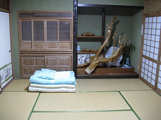| 晩メシが終わったら「新コロ」の影響で 早々20時に食堂やロビーが閉まった。 ちょっと寂しいが、これもしかたないのか…。 晩メシの後のうだうだが楽しんだけどね。 実は、今日の宿泊はJAL系の「計画欠航」 の関係で、最近になって急にお願いしたもの。 そのため、空きの関係で今日だけ 「よしまる荘」1階の相部屋なんだけど、 今は「新コロ」の関係で「相部屋」としては 使っていないとのことで、俺1人で使えた。 これは「新コロ」の”お陰”だね(笑)。 仏間か〜、とご先祖様にご挨拶しようと 写真左上の仏壇の扉を開けたら、 空っぽでしたとさ(笑)。 エアコンで涼みながらこのページを作り始める。 |