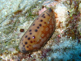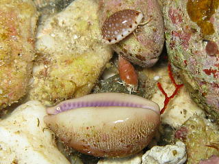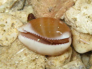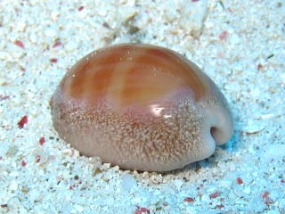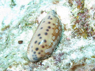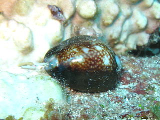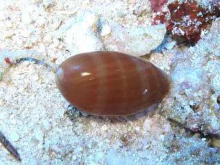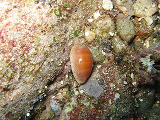 この一部だけ、底の質が違うね。 | うぉ〜、今度はクチムラサキダカラの幼貝 が-19.5mにあった〜。 これもAクラスだった(嬉)。 |