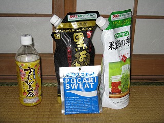 空の焼酎エコパックを「ボトル」にして 粉ポカリを既定の半分ぐらいの薄さで作って 冷蔵庫に放り込んだ。朝までに冷える。 そして、エアコンは効いてるけど暑いもんで、 自販機で冷たいさんぴん茶を買って飲んだら 旨い旨い。 俺が自販機で飲み物を買うなんて珍しい。 さて、22:30だ。 そろそろ寝るべ。 |