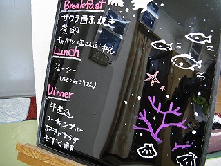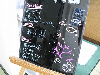 | おはしたっ! 6時に起きたらハラが減って、 まずはまるーぐゎを2本喰っちまった(笑)。 MENUの下から3行目の 「カジキの中味」の「味」の字を 見逃してはいけない。 「身」ではなくちゃんと「味」の字を使っている。 さすがだねぃ! |