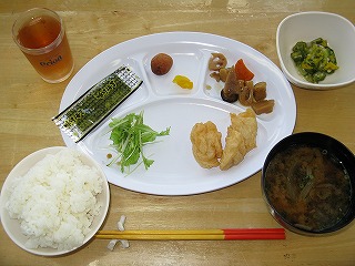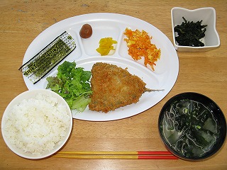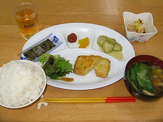 今日のお献立。 | あじフリャーは、あちこーこーで サクサクなのだ。 おコメは1膳にとどめておく。 右上に写っている ほうれん草の磯辺おひたしは、 俺にはちょっと辛かったので、 申し訳ないが残した。 ごめんなさい。 |