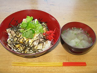 昼メシは親子丼〜。 量は軽めに見えるが、 実は丼がなかなかデカいし 鶏もも肉もたくさん使っているので、 結構な満腹感があるよ。 |