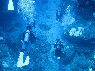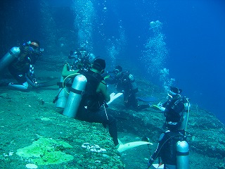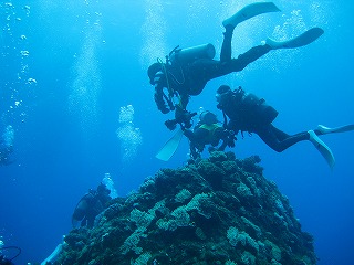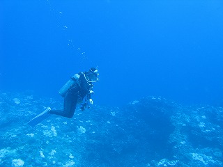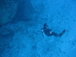 3本目のポイントはダイヤティ。 透視度30mを超えるぐらいの 与那国ブルーが気持ちいい。 |