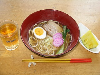 与那国島でのダイビングが終わり、 さ、晩メシだよ〜。 俺のルールで、最終日はオリオン生っ。 これが旨いんだ。 でも、これを呑むと帰らないといけないんだ。 |