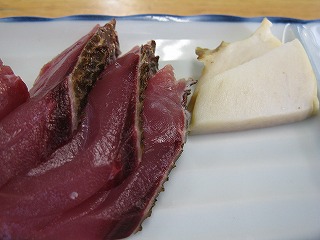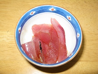 差し入れのキハダマグロ。 これがびっくりするほど弾力があり、 とても旨かった。 カツヲやカジキもそうだけど、 こういうレベルのモノを食してしまうと、 内地のグズグズした身のなんか 喰えなくなっちまう。 あ〜シアワセ。 |