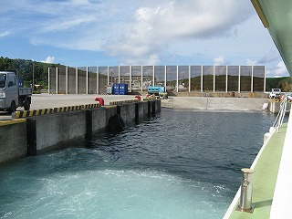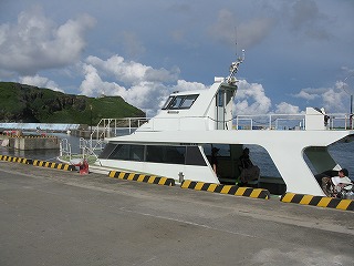 | 今日は、 普段は「フェリーよなくに」が接岸している 岸壁から乗り込む。 |