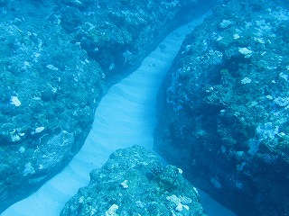 沖に向かい、水深を少し落とす。 この先にトンネルがある。 |
