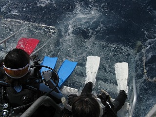 2本目のヌルガンにENする準備。 女の子ダイバーチームのフィンが フランス国旗のトリコロールみたい。 左から青白赤なら 国旗と順番が合うんだっけ? |