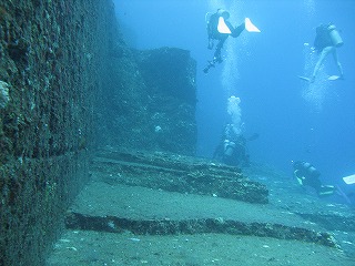 | 3本目はポイントが島の南側になり、 海底遺跡! 2本目からあまり時間をおかなかったので、 ボートでぼぉ〜っとしていた。 眠くなってきた。 |
