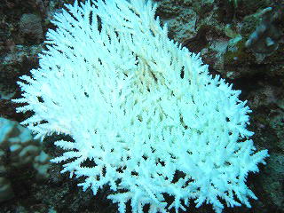 | トンネルから浮上すると、 見事に(?)白化したサンゴがあった。 |