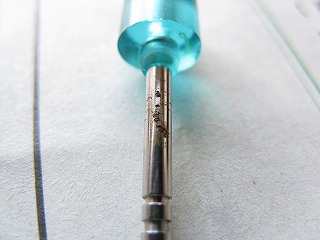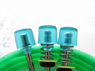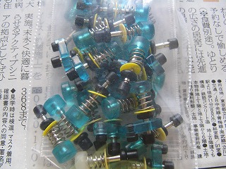 同じ規格の部品が2つあった(右2つ)。 オリジナルの部品(1番左)とは、 透明プラスチックの中の金属の軸の端っこ のデザインが違うが、機能維持のためには そんなこたぁ気にしてらんないよ。 使えりゃいいのだ。 |
