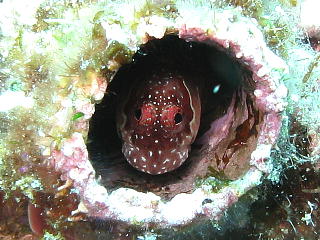 …と、そのトンネルの入口の-13.3mで きれいめのクチムラサキダカラを発見! 頂部にエナメル質のスレを伴うキズ があったのでBクラスだね。 この写真はトリミングなどをしていません。 原版をそのまま縮小しただけです。 |