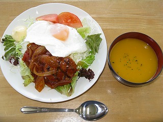 昼メシ。 以前の与那国島のページでも書いたけど、 俺は左利きなので スプーンはこの方向だ(笑)。 |