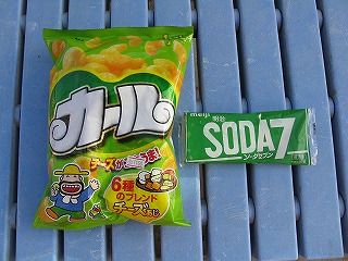 ダイヤティの2個目のトンネル。 | 今日も楽しい3本のダイビングでした。 アフターダイビングは、晩メシの前におやつ。 フェリーが入ったので、 まちぐゎにもアイスがたくさん入荷した。 今回はSODA7だ! 60円ナリ。 俺が大好きなきなこもちアイスは 入らなかったとのこと。 カール160円ナリもまた買っちゃった。 |