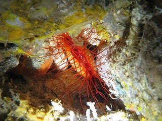 | 1本目のダンヌドロップから帰ってきたら、 今日から滞在する個室の準備ができていた。 今回は、201号室だ。 これで、やっと荷物やカメラなど、 大きく「店」を広げられる。 1本目はカメラを持って行かなかったのだが、 モンハナシャコが珍しく全身を出していて、 しかも角度によっては、下から腹側を 覗けたので、やはりカメラを持って行けば よかった…。 人生こういうモノですね。 |