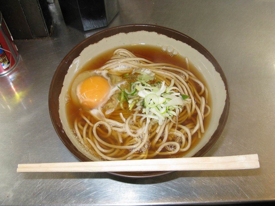 | さぁ、与那国島に向けて出発! 長野駅新幹線ホームで「行ってきます」の1杯をすする。 月見そば370円ナリ。 |