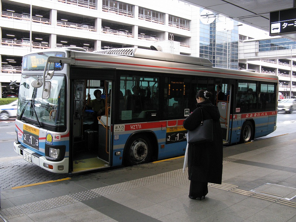 | 東京モノレールの第3ターミナル駅でわざわざ降りて「Welcome Suica」を買い、 第1ターミナルに行くために無料連絡バスに乗ったら、京浜急行バスの車輛だった。 |