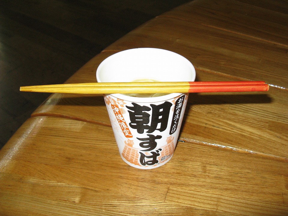 | 朝になり、オーナーさんに空港まで送ってもらった。 にふぇーでーびる! 昨日の夜に喰い切れなかった「朝すば」220円ナリを那覇空港の片隅ですする。 この「朝すば」ってアイディア商品だよね。 熱湯を注いでガジガジかんませば、すぐ喰える。 いわゆるカップ麺のように数分待つ必要がない。 要はゆで麺であればいいので、細うどんや茹でそばでもできる気がする。 |