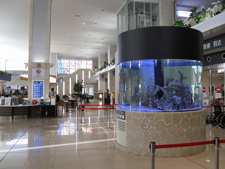 | 「はいどなん」をチェックアウトして、YDSに行って器材を片した。 ウエットスーツが生乾きだったのが気になったが、水滴は滴るほどではなかったからそのままメッシュバッグに梱包しちゃった。 YDSのクルマで空港に送っていただき、帰信(信州に帰ること)するよ。 与那国からはRAC742便でまずは石垣へ向かう。 いつもは飛行機のみを被写体にしてほとんど同じ写真になるから、今回はロビーも入れてみた。 |
